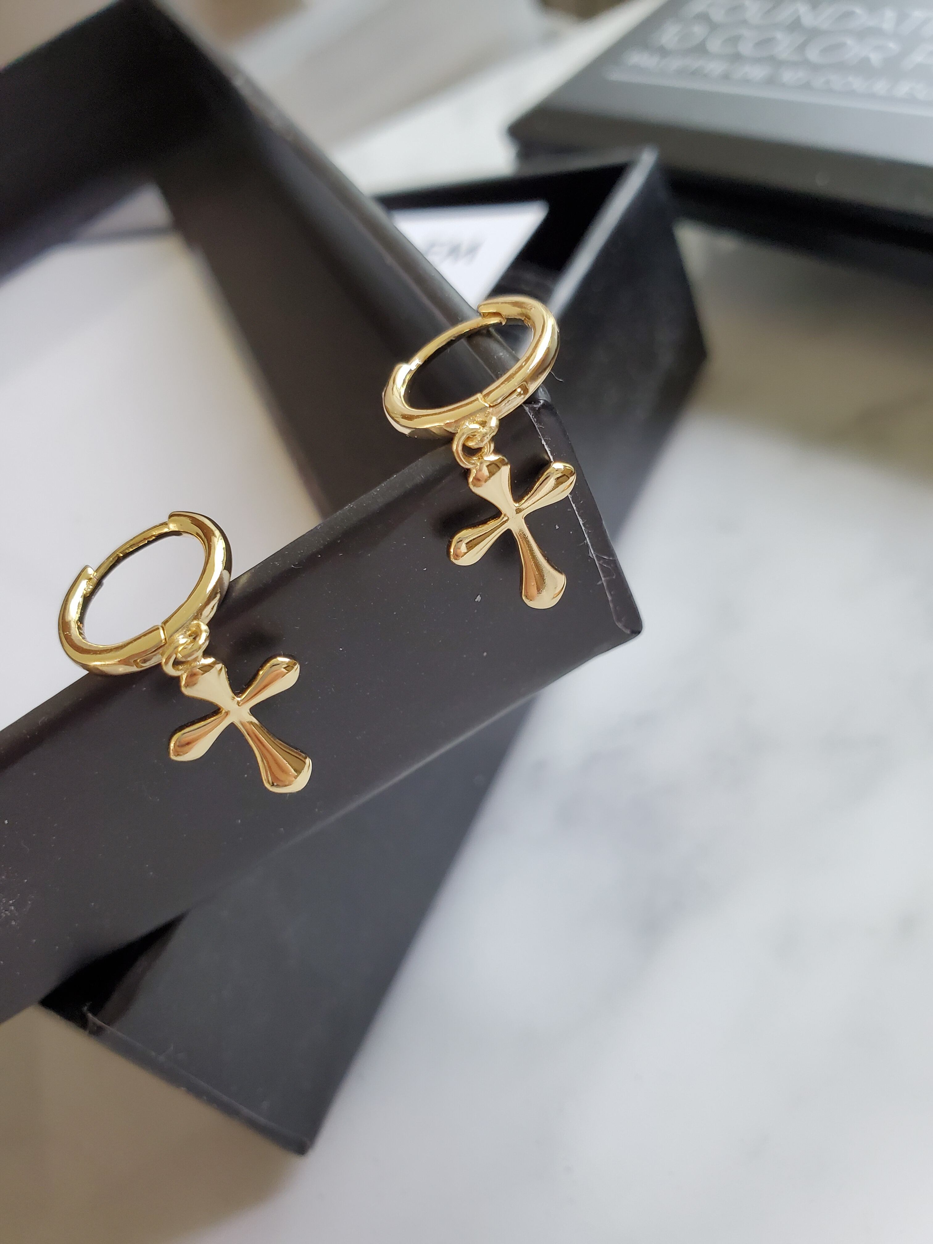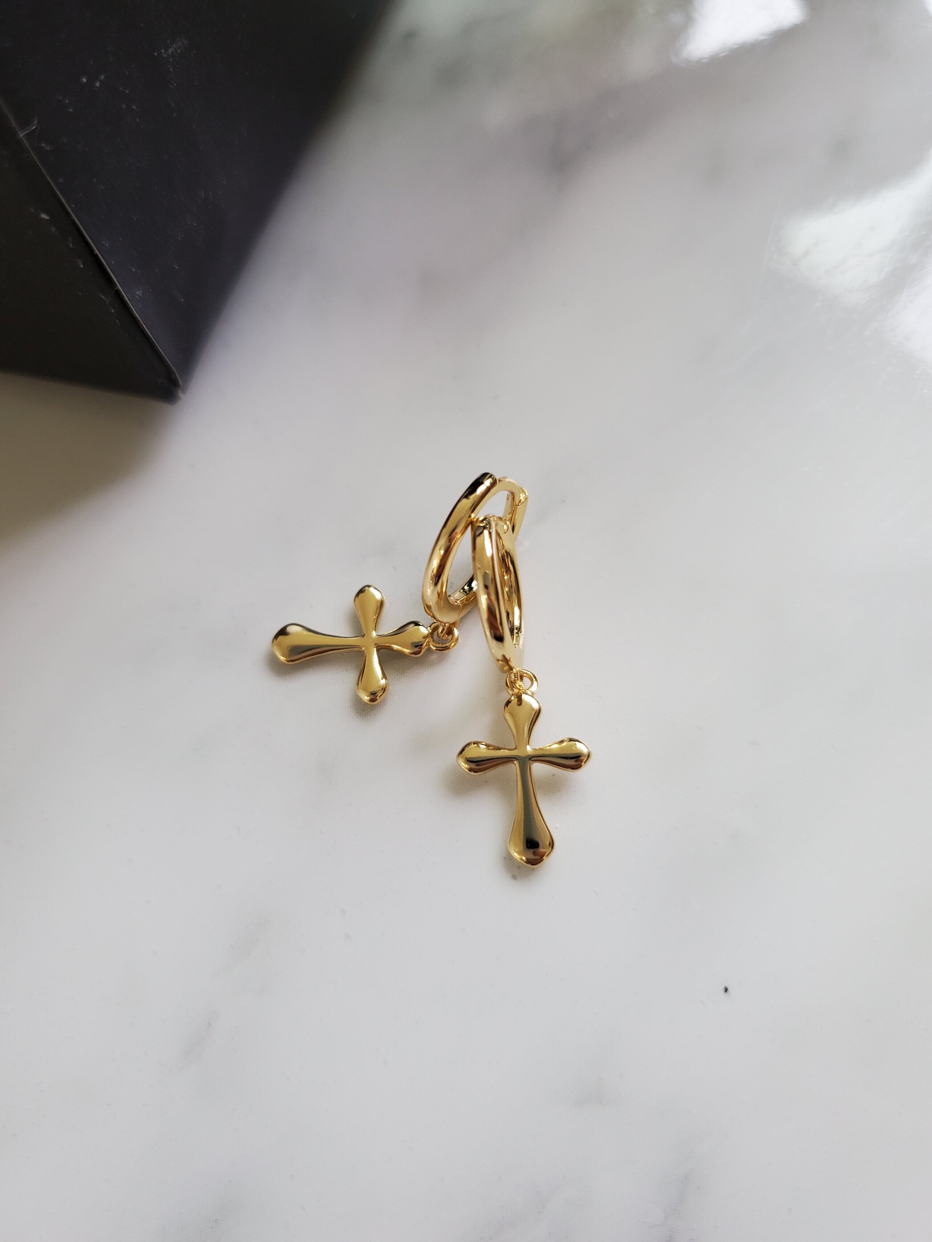 お好きなピアスとセットで付けてもかわいいクロスピアス。