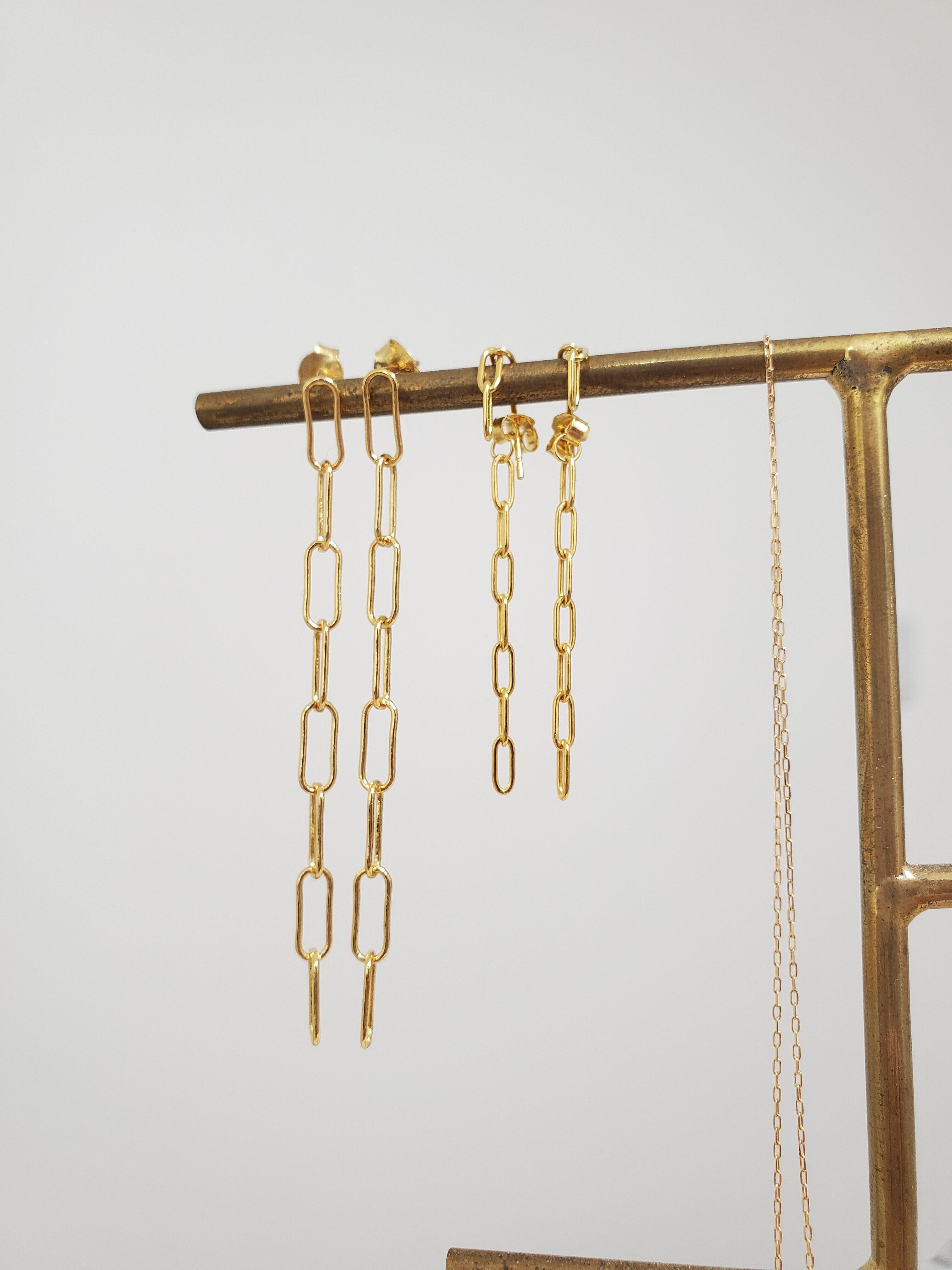 ロングチェーンのトレンドピアス。silver、goldのご用意となっています。