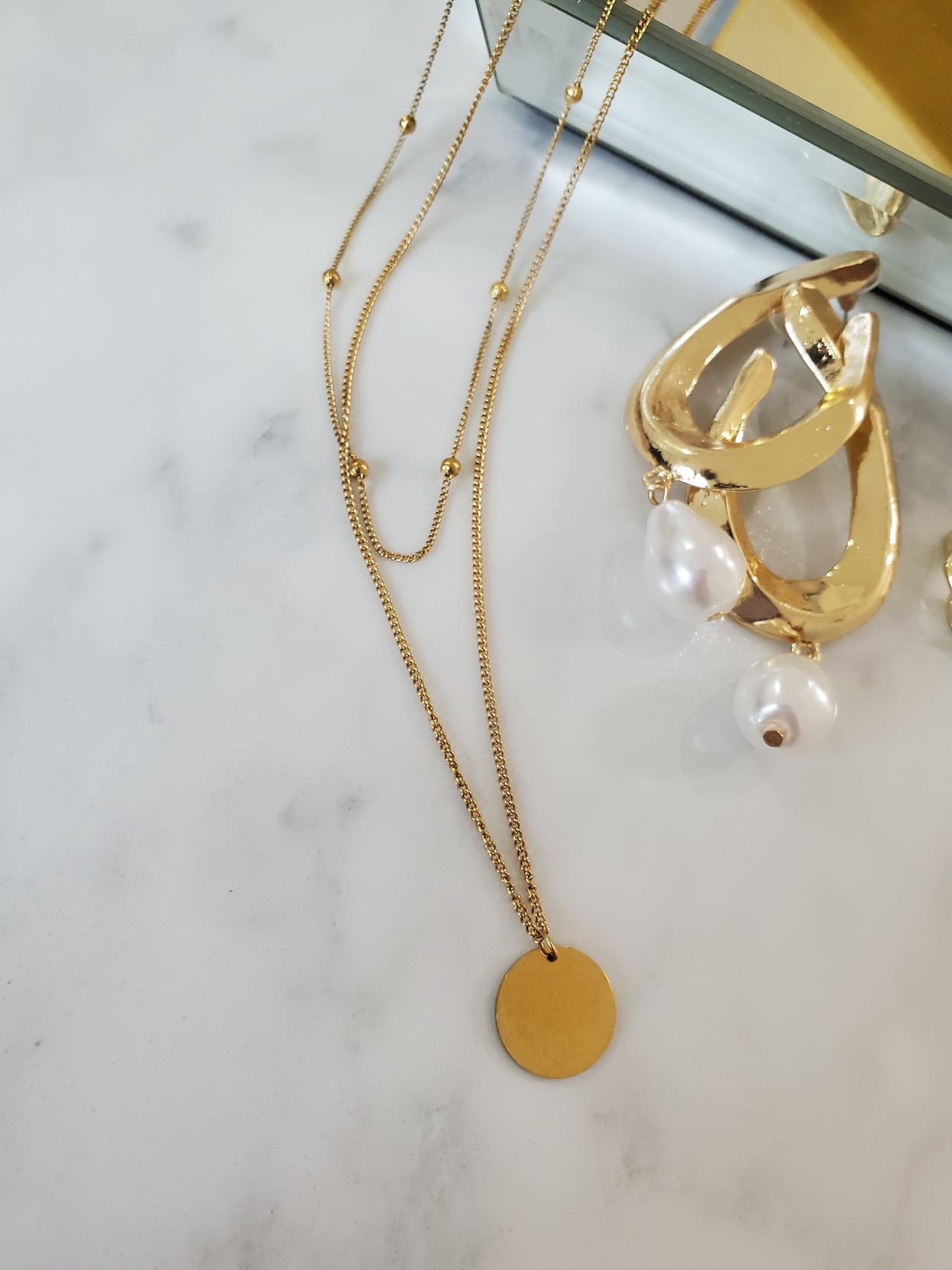 ダブルチェーンのお洒落なネックレス。一つで存在感が出せるネックレスとなっています。